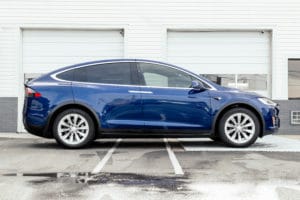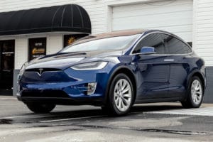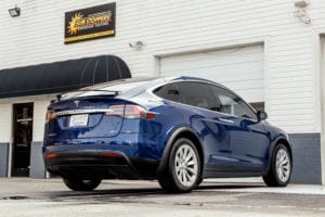 Take a look at this beautiful window tint job on this Tesla Model X! When you are looking to keep your Tesla cooler, more private, and reduce sun glare in your eyes while driving – then you need Tesla Model X window tinting services from Sun Stoppers!